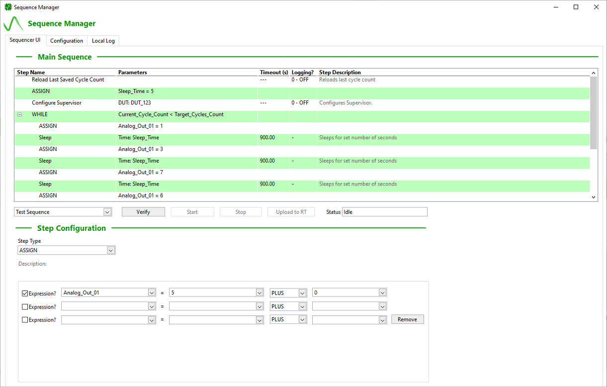 At the core of the platform is a simple, powerful sequencer designed for real world test workflows. Users can define step by step logic, conditional actions, and timing behavior without scripting or external tools.