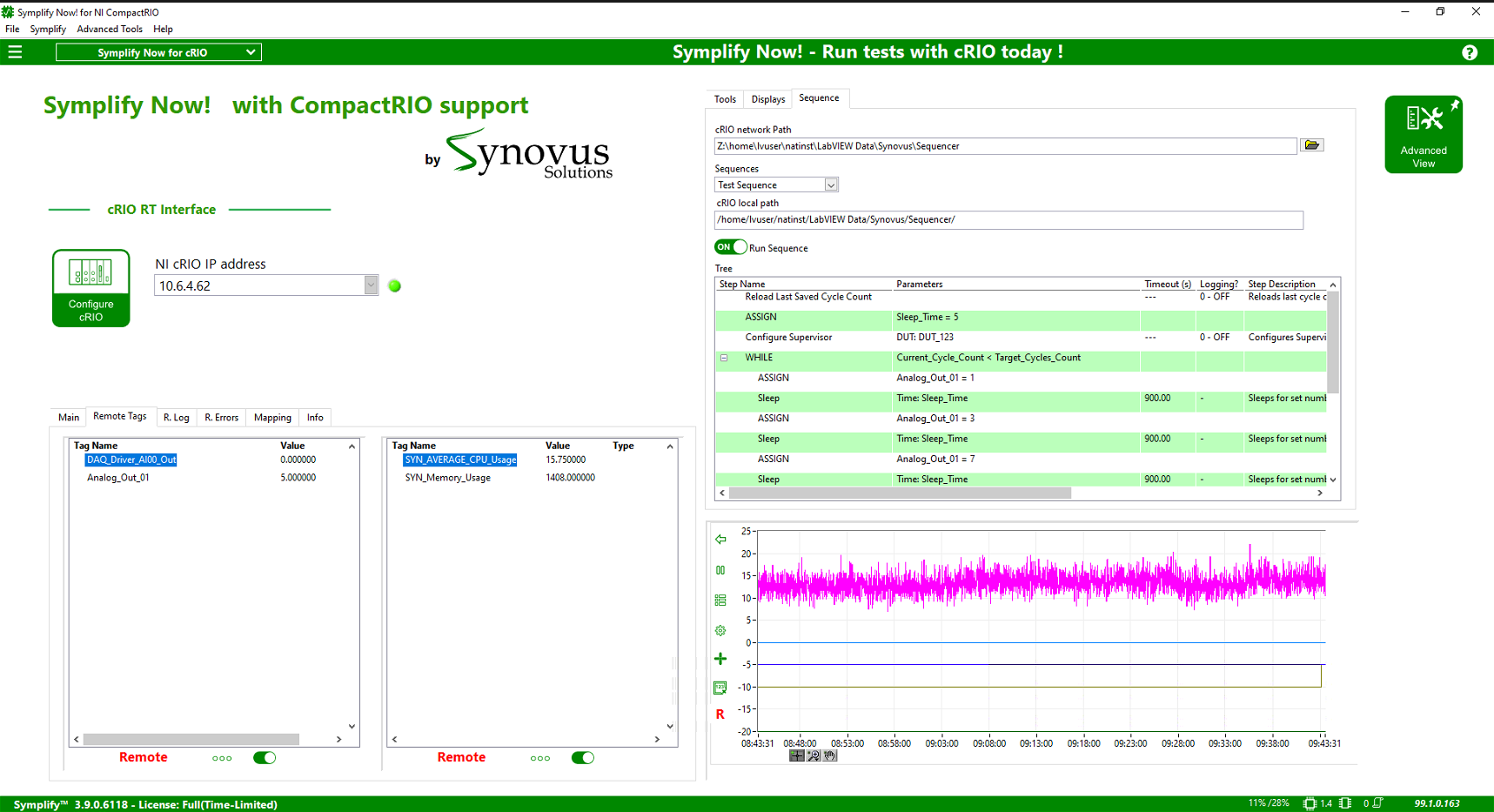 With built in real time control capabilities executed directly on the NI CompactRIO, users can configure, deploy, and manage control logic using an intuitive, no code interface. This allows engineers and test teams to focus on system behavior and results, not software maintenance.
